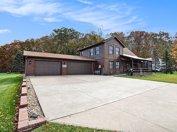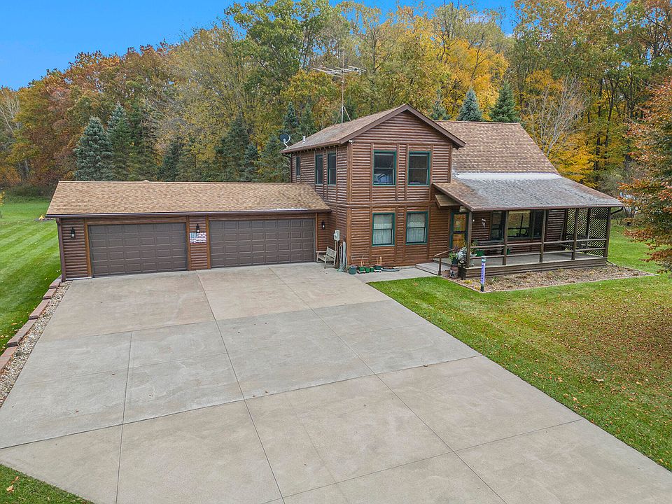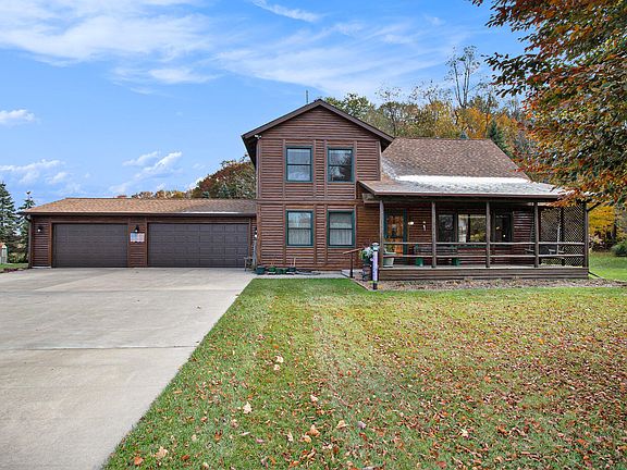 Multiple offer situation! Sellers are asking for final and best by Thursday 11/9/23 at 5pm and will be making a decision Friday 11/10/23 at 5pm. THIS NEAR TO PERFECTION LOG CABIN STYLE HOME SITS ON A GORGEOUS ONE ACRE LOT WITH AN ATTACHED 3 CAR OVERSIZED GARAGE. The main floor features an open concept and living room with soaring, vaulted beamed 22' high ceilings. The kitchen was completely redone in summer of 2023 and features hardwood flooring, quartz counters, stainless steel appliances including a new refrigerator and is open to the dining room with its antler chandelier and sliding doors out to the back deck. A bedroom, full bath and mud/laundry room compliment the main floor. Upper level features the primary suite with an area to create a 3rd bedroom and overlooks the downstairs. The basement could easily be finished and also includes a workshop area. Current owners have been meticulous in maintaining and improving the home with new flooring, windows and sliders, ceiling fans, blinds, redone driveway and stained and clear coated exterior. A GREAT LOCATION JUST MINUTES TO WARREN