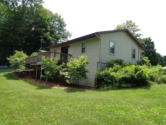 Well maintained ranch home on 7+ acres. Long drive leading to home on a private wooded setting. Beautifully landscaped with fenced garden area. Large deck overlooking mature woods with small creek. Just an outstanding setting! The home has over 1400 sf with a spacious family room set up for a wood stove (the stove has been detached and in the garage). Three total bedrooms and 1 1/2 baths. Walkout basement with rec room and bedroom just needing carpet. Extra deep 24x32 attached garage. See the attached photos and you will agree! Fantastic country setting waiting for you to visit!