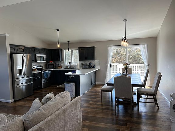 Beautiful 3 bedrooms 2 bath home located in Nature's Edge Development. Stunning entryway leads up to open and bright living room, with vaulted ceilings, wood laminate flooring, large kitchen with custom cabinets, breakfast bar, stainless steel appliances. Dining room walks out to large deck overlooking fenced in back yard, 32x16 heated in ground pool. Master bedroom with walk thru full bath, walk in closets and upper level laundry room. Lower level has a wet bar, large living/recreational room for entertaining with optional space for a 4th bedroom. Large 3 stall heated garage with drive through garage door opening to the back yard. Located near parks, Becker Community Center, bike paths and Becker Schools.