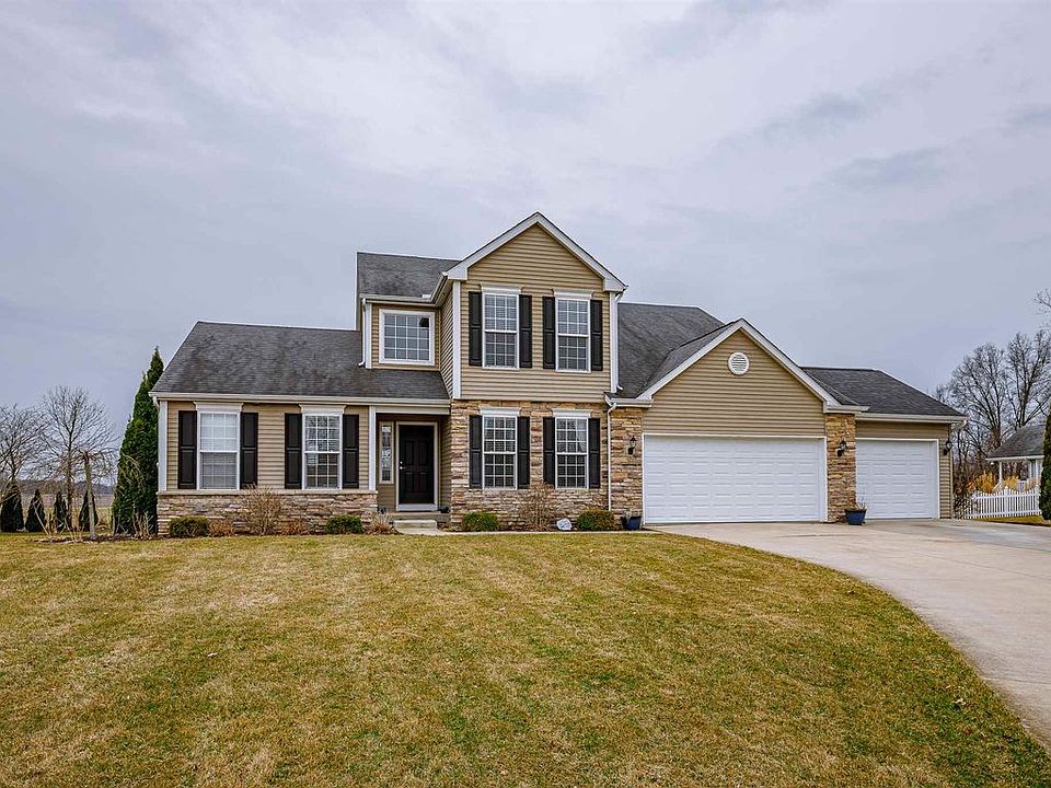 Come home to your own private backyard pool oasis in Horizon, Discovery, Penn Schools! Not your average floor plan here, with a two-story foyer and great room. This home provides loads of natural light throughout the entire home. Hardwood flooring runs throughout the main level, except for the main level master bedroom suite, which has vaulted ceilings and a spa-like master bathroom. The kitchen has all high-end stainless steel appliances, granite countertops, and a huge island. Almost the whole house has been freshly painted in tasteful neutral colors. The daylight finished basement provides another large gathering space, a theatre room, half bath, and a fun bar! The large deck is great for dining or entertaining, and the beautiful pool level patio is entirely fenced with quality aluminum fencing. There is still plenty of lawn space outside of the pool. Big bonus feature: a whole house generator for peace of mind. Don't miss out on this move-in condition home and wonderful outdoor space!