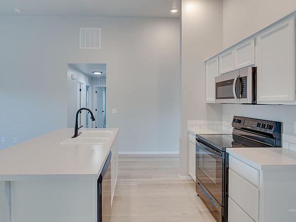 The Chandler 1447 |Located in desirable Delaware Park with fantastic access to Indian Creek Plaza, commuting along Chinden Blvd or fast freeway access! Kitchen opens to large living room with large island. Formal dining room in front makes a great dining space, home office or sitting room! Master bedroom with attached bathroom features walk-in shower, dual vanities and walk-in closet. Engineered vinyl plank throughout the dining, kitchen and living room! Contact us on Smart + Safe Home features. Alarm set from 10pm-5am. Photos are actual home!