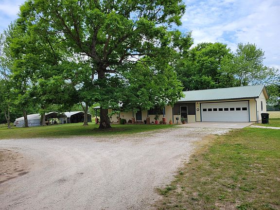 Grab your chickens and a few calves...You found it!! Country Living!! Home in the country with 17 acres. . 2 nice size bedrooms and nice large bathroom. 8.5 acres in back of home is completely fenced and current use is for hay. Large deer stand stays on the property. Oak trees, amazing front porch, metal roof only a few years old. 2 car garage. 1/2 bath in garage. RV hook-up, well house doubles as storm shelter. Septic system includes new tank, risers and clean out. Water heater installed in 2019. Home includes wood stove in living room and open floor plan. Raised garden beds, storage shed, 2 large carports. Appliances included in home are Propane cooking stove, white refrigerator and washer/dryer. Flower pots on front porch do not stay.