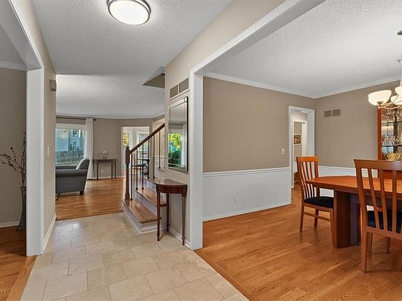 Welcome to this beautiful Blue Valley two-story home! You’ll be impressed the moment you step inside this well-maintained, move-in ready gem. The main floor showcases stunning hardwood floors throughout, a bright and inviting great room with a fireplace, and large windows that fill the space with natural light. The open layout flows seamlessly into the breakfast area and kitchen, making it perfect for entertaining family and friends. The kitchen features granite counter-tops, stainless steel appliances, and plenty of cabinet space. Also on the main level, you’ll find a formal dining room and a flex space ideal for a home office, sitting room, or playroom. A half bath and laundry room off the garage adds everyday convenience. Upstairs, hardwood floors continue on the stairs, leading to new plush carpet in the hall and bedrooms. The spacious primary suite includes abundant closet space, a double vanity, a walk-in shower, along with heated floors. Three additional large bedrooms and a second full bathroom—with a double vanity and tub/shower combo—complete the upper level. The unfinished basement offers endless possibilities for expansion, storage, or recreation. Outside, enjoy a beautifully treed lot that provides privacy and plenty of room to relax or play—your own backyard oasis! Just a short walk away, Shannon Valley Park features a playground, sports courts, picnic shelter, and direct access to the 14-mile Indian Creek Trail System for hiking and biking. Located in a friendly, established neighborhood, this home is close to Highways 435, 69 and 35, Corporate Woods, shopping, dining, and entertainment. And of course, it’s in the award-winning Blue Valley School District. Don’t miss your chance to make this beautiful home yours!