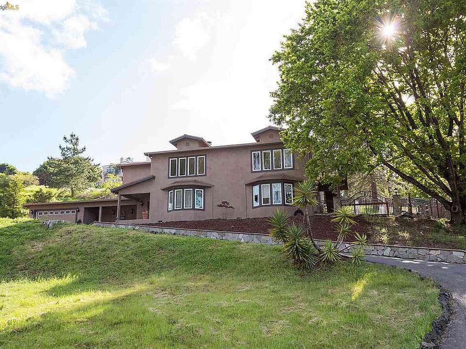 Set atop a private drive, this expansive home offers space for family and friends in a retreat-like setting that defies the convenient city location. Five bedrooms and four bathrooms spread out across 3500 square feet offer generous gathering spaces -- the dramatic vaulted two-story living room boasts a magnificent double-sided fireplace which opens to the family room , overlooking the multi-tiered hillside backyard. The kitchen is built for cooking and conversation, with Viking appliances, a built-in Miele espresso station, cherry cabinets and plenty of room for guests. A large laundry room leads to both the expansive backyard, and a two-car garage outfitted with built-ins and plenty of storage. The two downstairs bedrooms share a travertine appointed Jack-and-Jill bath, sophisticated and classic-yet-modern. Hardwood floors throughout provide a streamlined segue from room to room.