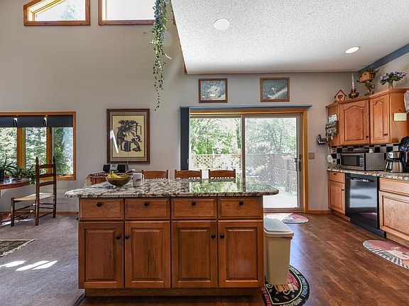Beautiful setting on two acres, surrounded by trees and wildlife! Three bedroom, three bath home with gorgeous tongue and groove vaulted ceilings, master suite, updated kitchen with granite, loft with office overlooking the great room, tuck under garage and partially finished lower level. Plenum heater/dual fuel, newer Goodman 100,000 BTU furnace, newer central air, newer water heater, gutter guards and septic drainfield. This is a unique home with tons of character. 10x40 deck for enjoying the outdoors!