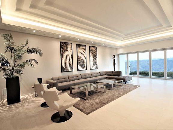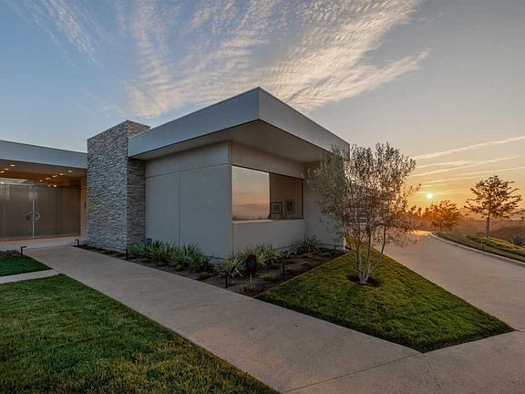 Eagle's Nest is the most unique estate in the Santa Rosa Valley. Stunning, one of a kind Contemporary Masterpiece designed by renowned architect Ebbe Videriksen, AIA. Modern Elegance in this newly renovated 5,000 sf estate perfectly situated atop 8 private acres. Open airy floor plan with soaring ceilings and walls of glass flood this unique home with natural light and offer spectacular views from almost every room. Connoisseur's kitchen with Meile appliances features a spacious breakfast area and melds into the formal dining room which includes its own wet bar and wine storage. Beautifully appointed library features its own office. There are 3 guest bedrooms and the sumptuous Grand Suite includes an adjoining gym. The property includes two garages, one featuring a basement for an abundance of storage or future wine cellar. State of the art Integrated Smart Technology System, Nest Thermostats, Security, Integrated Sound System and more. The lush landscaping is surrounded by nearly 2 acres of Mandarin Orange trees. For those looking to get away from the busy city life, one can infuse themselves in the beautiful natural surroundings of the Santa Rosa Valley and still benefit from being just a short drive from the 101 freeway, Camarillo Airport, Harbors, Beaches and local amenities. The breathtaking views and exceptional quality of this home must be experienced in person to be fully appreciated.