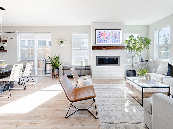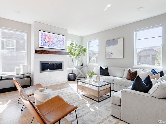 Back on market because buyers couldn't sell their current home! This meticulously maintained home in Central Park offers a wealth of custom features & upgrades. As you step inside you'll notice the open & light filled main floor living area lined with luxury flooring, accented with designer lighting & shaded by custom window coverings. The living room is centered around a gas fireplace lined with geometric white tile + finished with a custom wood mantel providing a cozy focal point for gatherings. The kitchen will impress with two-toned gray+white cabinetry, a farmhouse sink, backsplash tile, quartz counters, open shelving with custom wood, upgraded appliances + a pantry to keep you organized. Adjacent to the kitchen you'll discover a built-in coffee bar connecting the dining & kitchen space seamlessly creating an ideal area for hosting. Just off the dining area, slide open the door to the landscaped backyard, featuring a paver patio + concrete sitting area. Ascend up the stairs lined with plush carpet to discover a spacious, airy loft with a green wood slat feature wall. On this level you’ll locate 2 secondary bedrooms, the hall bath, a convenient laundry room + the primary bedroom. The primary bed is accented with another feature wall + a five piece bath with dual sinks, quartz counters, a large soaking tub + a glass encased shower. Step down to the finished basement to find a second living room, a 4th bed + a full bath offering a private space for overnight guests or just extra room to suit your needs. Organization is key in this home with custom closets in the primary & 2nd bedroom, the laundry room, linen closet, pantry + coat closet. You’ll also find overhead storage in the 2 car garage. All of this within walking distance to Stanley Marketplace, the shops + restaurants at Eastbridge Town Center, multiple parks & playgrounds, Bluff Lake Nature Center, Anschutz Medical Campus, Central Park Rec Center & a 15 minute drive to Downtown Denver + Cherry Creek!