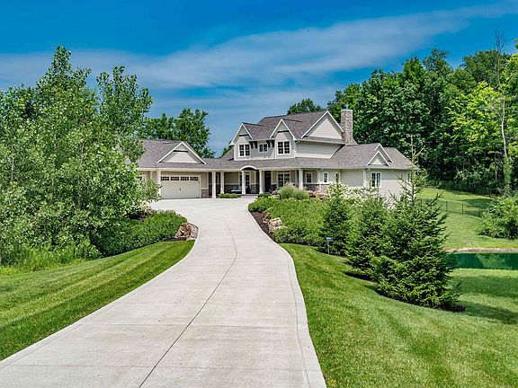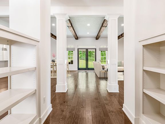 Welcome home to this custom-built stunner by luxury builder Al Hamed in the exclusive Estates on Homestead. Nestled on a serene cul-de-sac with a long private drive, this impressive residence boasts 5,954 square feet of well-appointed living space spread across a daylight basement and situated on a 2-acre lot adjacent to a tranquil pond and surrounded by trees for added privacy. Upon entry you're greeted by hand scraped hardwood floors, exposed beams, and soaring ceilings that create an inviting atmosphere. The grand foyer with built-ins sets the stage for the exceptional craftsmanship and detail throughout the home. The main floor features an open floor plan with an impressive great room w/beamed ceiling & sliders to a covered patio, custom tile fireplace and a wall of windows, which bathes the space in an abundance of natural light. You'll love the versatile sunroom to the back, which is conveniently located next to a former swim spa room with a half bath. The well-equipped kitchen is a dream, featuring a stylish hood, Moroccan tile backsplash, quartz countertops, paneled refrigerator, wall ovens, a gas cooktop, and spacious pantry. Enjoy meals at the sprawling center island or in the charming eat-in area, and host formal dinners in the separate dining room. The bonus mudroom is a standout with a dedicated dog wash area, built-ins, an additional sink, & access to the side yard. Your main floor primary en-suite is a true sanctuary, offering dual water closets, vanities, & walk-in closets, complemented by a stunning tiled shower & a freestanding tub for ultimate relaxation. Upstairs, a loft area provides additional living space alongside 2 bedrooms w/ensuite baths, and walk-in closets. There is also a flex room — perfect as a nursery, craft room, or office. The spacious lower level offers a bedroom, a workout room, a versatile space that could be used as a theater room or playroom, a full bath, and beautiful wet bar. This level also features LVP flooring & a massive storage room with built-in shelving. Additional bonus features of this home include covered front & back porches with wood ceilings and stamped/stained concrete flooring, a 5-bay garage (with 1 bay open to the back for lawn equipment, 3 bays in front, and 1 tandem bay), an invisible fence, and a wrought iron fence. This home is designed with luxury, functionality, & convenience in mind & is perfectly located near walking trails, YMCA, Lutheran, and SACS schools.