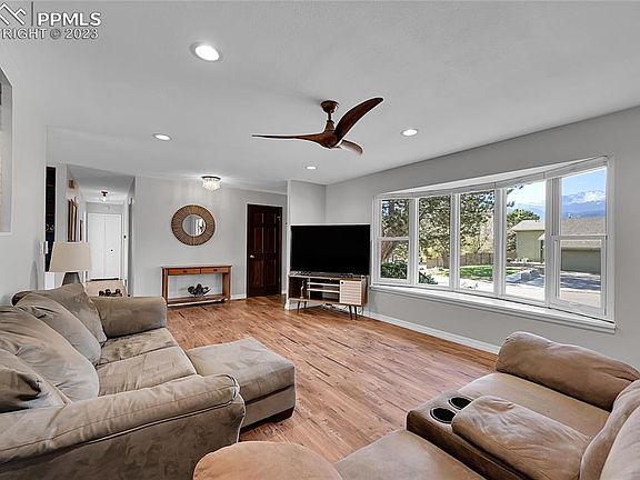 Who does not want to live on the West Side? Whether you’re looking for access to countless trails or are drawn to the natural beauty that defines the area, this 5-bedroom, 3-bathroom ranch on a fenced-in ? acre, is the perfect home base to take advantage of everything the West Side has to offer. Step inside to discover a thoughtfully re-designed open concept living area with new luxury vinyl plank flooring, new paint, and a picture window that perfectly frames Pikes Peak. The kitchen is the heartbeat of this home, renovated in 2019, to include new flooring, new pristine white cabinetry, new granite countertops, custom eating nook, and is finished off with a wood burning fireplace. Down the hallway the Primary suite is bright and spacious featuring an ensuite bathroom, new carpeting, and new paint. Two secondary bedrooms and a bathroom offer convenience and comfort whether you have family or are entertaining. The fully finished basement has a large family room with a second wood burning fireplace, and two large storage rooms that still feature timeless original touches. Another bedroom and bathroom complete the basement. The two car attached garage features a Tesla NACS electric charger for the environmentally conscious, and also includes an updated electric panel installed in 2019. Other updated features in the home include: new washer and dryer that convey (2019), a new hot water heater (2022), and new radon mitigation system (2019). Nestled in a charming, established neighborhood next to Pioneer Park, you'll enjoy the convenience of Old Colorado City's shopping and dining options nearby. With its breathtaking views, proximity to natural wonders, and modern updates, this West Side ranch offers the perfect blend of tranquility and accessibility. Schedule your showing today and seize the opportunity to make this remarkable property in a remarkable location, yours.