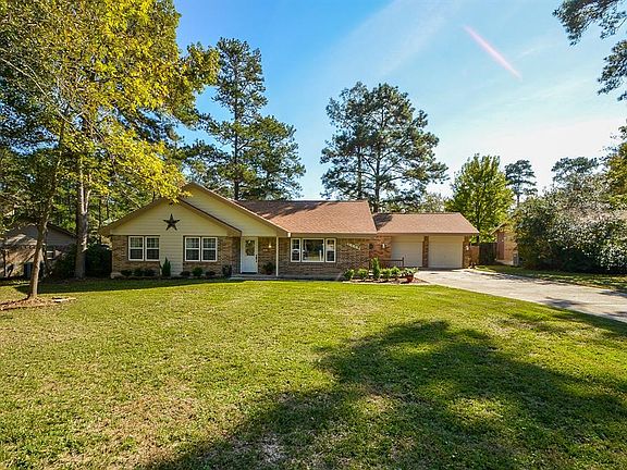 Stop the car, you won't be disappointed this home is loaded with upgrades! Home never flooded during Hurricane Harvey. Laminate wood like floors, roof redone 12/16, windows replaced 1/15, freshly painted interior, exterior siding repainted 12/16, ceiling fans throughout home, wood decorative white Wainscoting wall paneling creating a beautiful decorative modern look, secondary bedroom has wood planked decorative wall, lots of windows to enjoy the beautiful country living, decorative paneling doors throughout home, wood swing gazebo area and a built in swing set for the kiddos, brick fire pit, whirlpool stainless steel appliances, has an open floor plan concept, nestled with plenty of trees, large shed for lots of storage, large dining/kitchen area to accommodate many, covered backyard patio with recess lighting & ceiling fan, large walk in closets, tiled floors, a large fishing pond, with basketball court, playground for the kiddos. Close to HWY 249 for an easy commute to Houston.