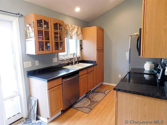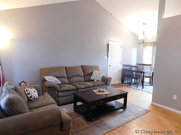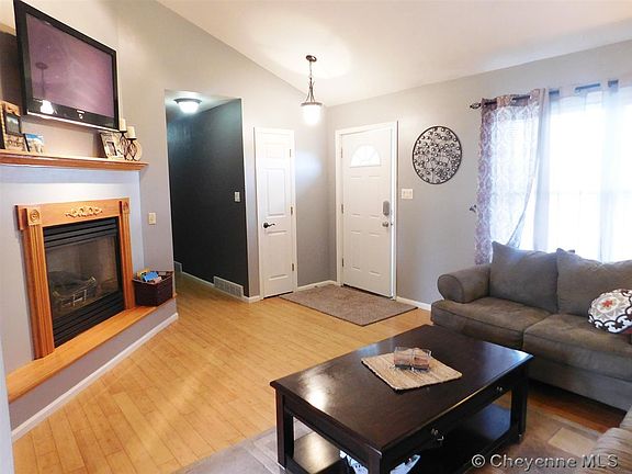 Lovely ranch style home in Winchester Hills. Close to the Wyo-Colo Border. Touch of country living. Bamboo floors, vaulted ceiling & a gas log fireplace in living room. Country kitchen w/stainless steel appliances that are included & patio door out to fenced back yard & deck. Three bedrooms on main level. Master bedroom w/full master bathroom & walk-in closet. Finished basement with family room, 4th bedroom & 3rd full bathroom. Large finished laundry room. 2 car attached garage. Sprinklers system.