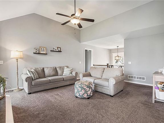 Welcome home to this beautiful split entry that welcomes you from the moment you step in the door. Built in 2018 and is better than new! Walking upstairs, you are immediately greeted by the open flow from the living room to the kitchen, while overlooking the spacious backyard. The upper level features the primary suite, two additional bedrooms and the laundry. In the lower level, there is rec space + another bedroom and a drop zone leading you to the garage. Updates & upgrades throughout that make this house move in ready. Outback, you will noticed the covered deck + stairs down to the patio and a large fenced-in backyard. Located minutes from downtown Kearney, this home is in close proximity to schools, restaurants and so much more!