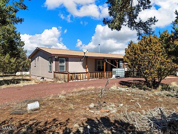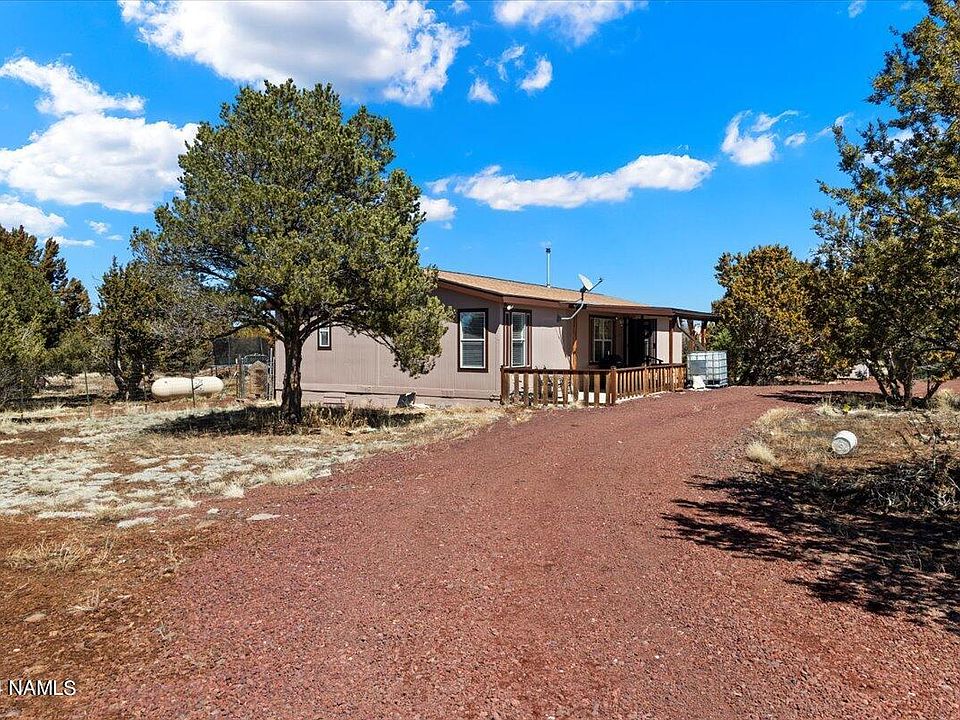 ASSUMABLE FHA LOAN AT 3.75% Interest Rate to qualified Buyers! MOTIVATED SELLER! Seeking solitude, endless starry skies, and ample space for your toys? Welcome to your future home! Nestled just outside Williams city limits, this charming county home offers serene mountain views on spacious acreage, perimeter fenced for privacy. Close proximity to STATE TRUST LAND. Enjoy two family rooms, two cozy fireplaces, and a split floor plan with 3 beds/2 baths. Vaulted ceilings accentuate the airy feel. Entertain outdoors on the front covered patio or rear deck. The primary suite boasts a luxurious ensuite bath with soaking tub, shower, dual sinks, and abundant storage. Plus, 2 sheds included.