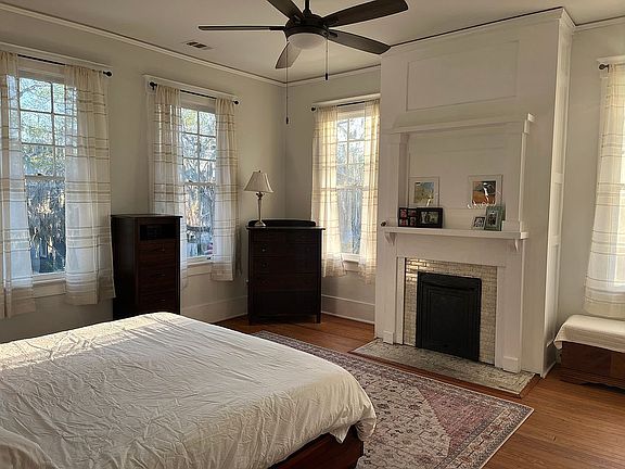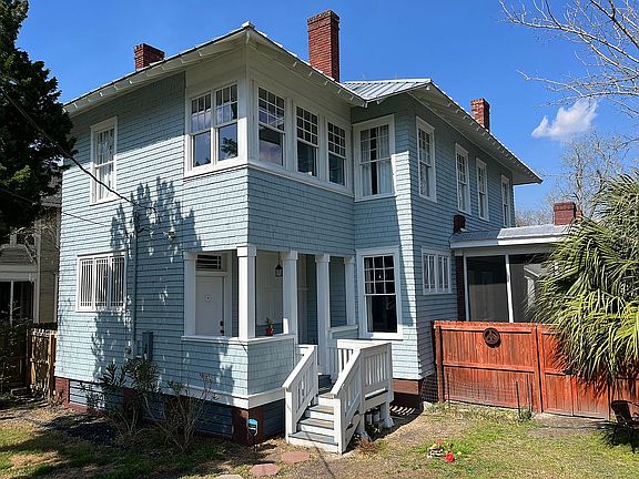 Turn of the 20th century craftsman home, circa 1910, full of historic charm and character! From the exterior cedar shake siding framed by grand brick columns and large patio and porches to the interior hardwood floors, fireplaces, and tall ceilings and windows, the home exudes a southern charm and style fit to entertain all your guests and family. As you step into the first floor of the home, you are greeted by tall ten-foot ceilings and windows which are located throughout the home and provide an abundance of natural light. The staircase and custom windows framed by layers of trim and crown molding add a special touch reminiscent of the era of the home. Two sets of large double pocket doors original to the home provide open free-flowing access from the front hallway/foyer to the living room and from the living room to the dining room. The living and dining rooms offer fireplaces with original mantels and tile thresholds and three sets of vintage style French doors leading to the large screened in side porch. From the dining room, a butler’s door provides an additional access to the kitchen which is a perfect mixture of sleek updates and original charm. The kitchen offers sun-filled custom trimmed windows, custom cabinetry with bubble glass panes, vintage pattern tile floor, walls of subway tile, vintage pedestal sink, granite countertops, and exposed brick chimney original to the home! Also located on the first floor is a guest bathroom with vintage basketweave tile floor, subway tile walls, and vintage corner wall sink. There is also a separate bonus room/flex space on the first floor that can be used as an office or additional dining area. The second floor of the home offers four bedrooms with original accents including fireplaces, large custom windows with crown molding, transom windows, ceiling fans, hardwood floors, and tall ceilings throughout. Paired with the bedrooms are two full size bathrooms, one with tile and glass shower and one with an antique clawfoot tub. Both bathrooms include vintage sinks reminiscent of the era of the home. The bathroom along the back side of the home includes two walls of windows offering a spectacular view and show of the sunrise and night sky! The third floor/attic of the home, accessed by a separate set of stairs, contains an additional ~ 525 square feet of potential living space which could be finished and used as an additional bedroom, office space, or recreation room. Outdoor amenities include a large terra-cotta tiled front patio, large screened in side porch with dual ceiling fans, and back porch with wood decking. The landscaping has also been done for you...just sit back and watch your privacy grow. Other outdoor amenities include a fully fenced in backyard with a gated entry from Duffy Lane to a concrete parking pad which is used for private off-street parking. The concrete pad could also be used as the foundation for the future construction of a garage or carriage house. Located in the Benjamin Van Clark neighborhood of midtown Savannah, the home is conveniently located to the Truman Parkway and other main thoroughfares including Henry, Anderson, Broad, Wheaton, and Victory. Located less than two miles from the historic squares and riverfront, you can walk or bike in less than 15 minutes to all that downtown Savannah has to offer...or hop in your car and be there in less than 5 minutes! Also, within walking or biking distance are historic Forsythe Park and Daffin Park! Recent updates to the home include a new HVAC unit, tankless gas water heater, plumbing, electrical, and metal roof. Buyers' agents welcome. Please text message the owner’s phone number to inquire.