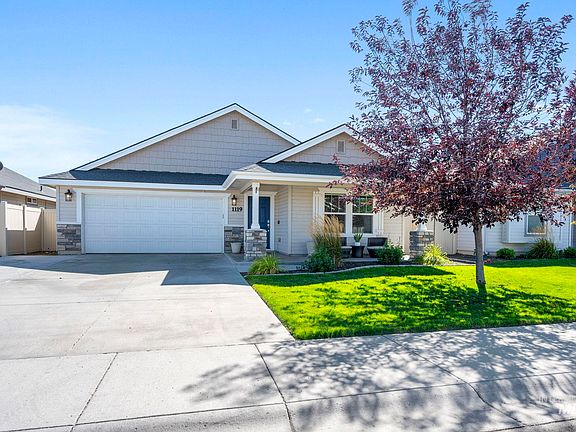Welcome to this single level dream floor plan in Kuna! A charming front porch leads into a bright and airy layout w/ vaulted ceilings and plenty of natural light. The split floor plan features LVP flooring and updated lighting throughout, living room with a stunning electric fireplace and built-ins, an open concept kitchen complete with granite countertops, S/S appliances, newer DW, inlc. refrigerator, and spacious pantry. A bonus/den offers the perfect spot for a home office, playroom, or hobby space. The primary suite is a relaxing retreat with a large walk-in closet and soaker tub. Step outside to the oversized back patio—ideal for BBQs, gatherings, or simply soaking up the sunshine. The neighborhood is filled with community parks and landscaped walking paths, with a common area and park right out back for privacy and extra space to enjoy. Greyhawk subdivision is conveniently located between Meridian and Kuna with easy access to I-84, shopping, entertainment, and restaurants. Come take a look today!!