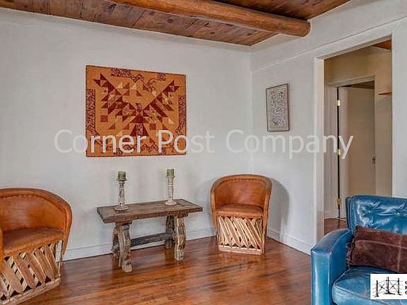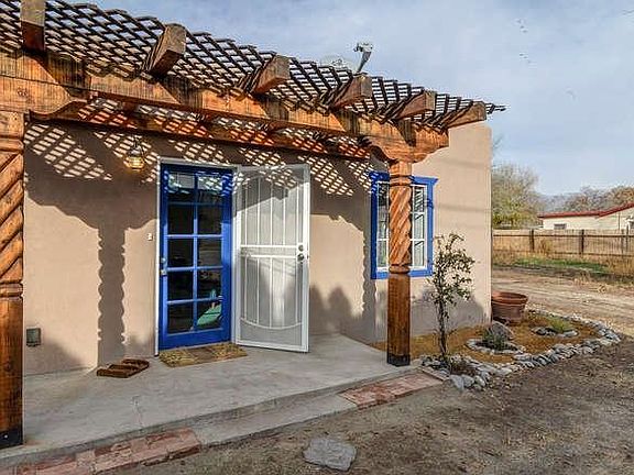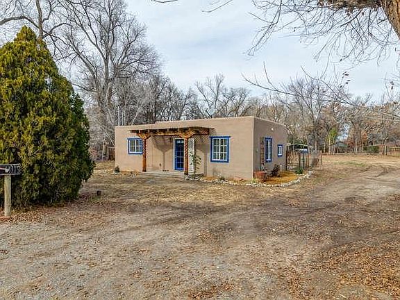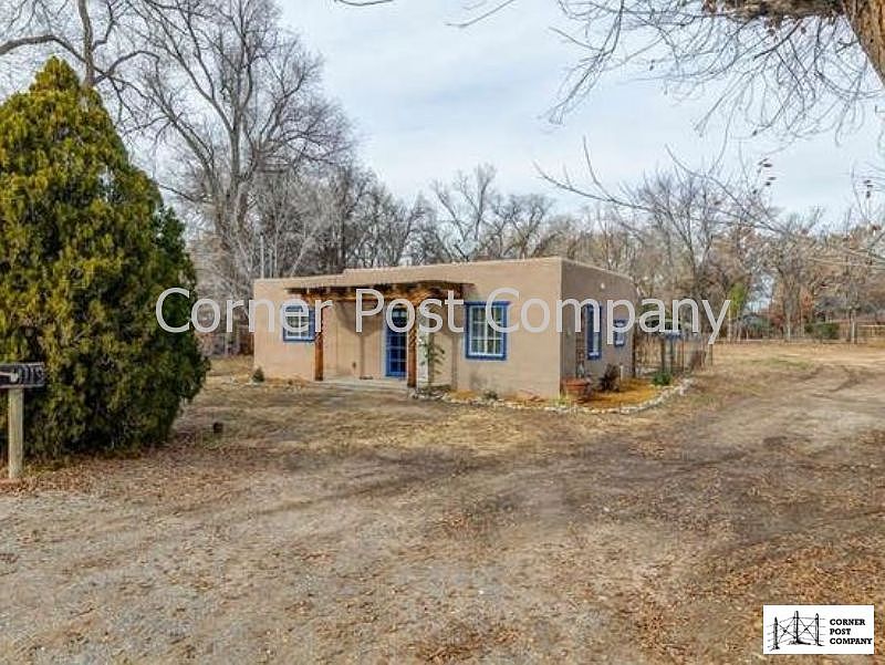 This charming one Bedroom, one Bath home is located close to the Bosque--biking, walking your dog, and close to the Rail Runner. The home has a lot of detail inside including carved posts, beams, wood ceilings and vigas. Original hardwood floors in Living room and Hallway. Kitchen has Talavera tile countertops. Bathroom with pebble stone flooring, tile shower and walls, skylight and glass blocks. Laundry room includes Washer and Dryer. No A/C, has wall heater.