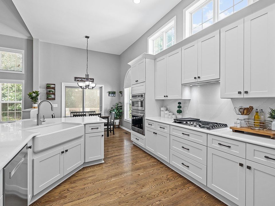 The sellers of this amazing, executive home have updated every space with an eye for detail! Upon entering, you’ll notice the architectural wood & iron staircase, the stonework around the fireplace, the beautiful hardwood flooring, the magazine-worthy custom kitchen-appointed with quartz countertop and backsplash, soft close cabinets and drawers as well as high-end appliances. Whether you’re making a cup of coffee or entertaining 20 guests, this kitchen is a dream to be in. And speaking of entertaining – the open concept floor plan allows for great flow from room to room, and from the inside right out to the beautiful deck and landscaped yard. On the main level there is a large primary bedroom with a spa-like bathroom and a walk-in closet. Upstairs are 2 additional large bedrooms with custom closets and large windows, an updated full bath and a large bonus room that can serve multiple purposes (guest space, TV room). A 10-minute drive takes you to shops, schools, restaurants, I-40, RTP and Chapel Hill. This is one of the prettiest homes in the neighborhood. Don't miss it!
