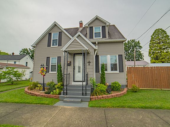 Lots of character & charm to this historical 3 bedroom, 1 bath two story home located in a convenient area in town! Spacious living room, Charming kitchen with the utility room on main level. All appliances included, along with the washer/dryer. Replacement windows, new front door,vinyl siding, landscaping and the fence are a few of the updates to mention. Hardwood floors to the upper level bedrooms, unfinished basement with fireplace. Fenced side yard, little private oasis awaits! Great for entertaining!