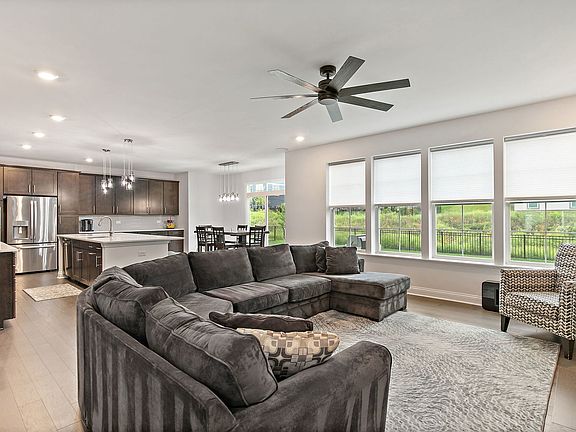 Woodlore Estates, a Renoir model which is the largest open floorplan with 3344 sq. ft. plus another 1536 sq. ft. unfinished basement for endless possibilities. First floor bedroom with full bath makes for a great in-law suite or guest room. Huge 2nd floor loft ideal for an office, playroom or a 2nd family room. Three full baths on 2nd floor including upgraded master bath, hall bath and a bedroom/bath ensuite. With the Designer Select Upgraded Package includes GE Profile high-end kitchen appliances, ceramic tile backsplash, extra large baseboard trim and crown moulding, hardwood flooring and more. Seller has added a 25' x 25' patio, fenced backyard, new washer/dryer, cabinets and quartz countertop in 2nd floor laundry room, painted entire interior of home including doors and trim, professionally done epoxy garage floor along with drywall and LED lighting, new light fixtures, custom built cabinets/shelving in family room, custom blinds through out. This move-in ready home blends elegance and functionality.