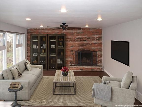 Unique Floor Plan, 3 bedrooms, full bath and garage access all on main floor. Lower level is living room that has new flooring, dining room, kitchen, large laundry, full shower bath and utility room. Brand new stainless refrigerator and range. Wood burning fireplace and large wall of windows accent Living room. Hardwood flooring in Bedrooms. Kitchen Island provides extra work space between Kitchen and Dining room. New concrete rear patio. Located in the Gateway School District close to AGH Forbes, UPMC East, Turnpike and Parkway. Nice Corner Lot. Property sold "AS IS". Property is NOT for Rent. No showings until Governor's edict is lifted
