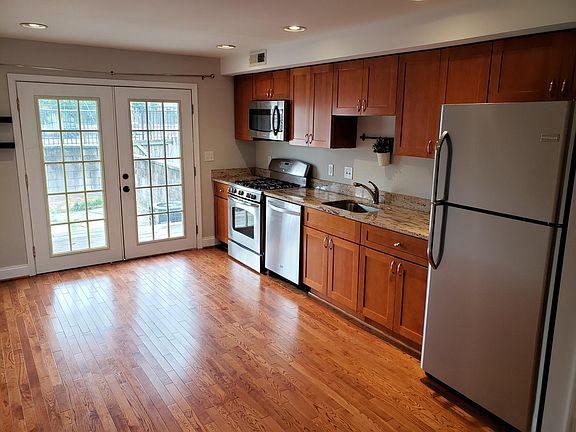 Two bedroom, two bath on a quiet street with two decks and finished basement! Bright living space with lots of storage, bonus finished basement, gleaming hardwood floors, beautiful granite kitchen with stainless appliances and cherry cabinets. Deck and gated patio accessed by french doors in the kitchen. Second story deck off of rear bedroom offers lots of outdoor living space. Two bathrooms on second level. Finished basement can be used as an office, den or bonus room. Washer dryer in basement. Tenant responsible for all utilities. No smoking. Dogs considered for fee.