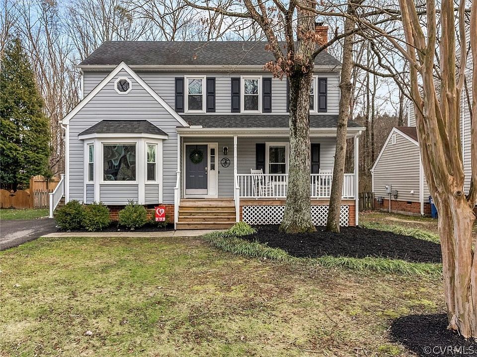 Welcome to this immaculate home located in the highly sought after Bon Air School District! The light and spacious family room features newly refinished hardwood floors, brand new gas logs with remote and double french doors to the rear yard! A bright and open eat-in kitchen with newer granite countertops, gas cooking and a huge walk-in pantry. Off the kitchen, you will find a second front entrance to the mudroom/laundry with great storage. The front flex room with hardwood floors can be used as a dining room, home office or playroom. The second floor features 3 very generous sized bedrooms, a primary bedroom with a large walk-in closet, plus additional closet, en-suite bathroom and overhead lighting. The additional bedrooms feature large closets, overhead lighting, plus two additional finished storage areas, one is the most adorable lego room for the kids! The fully fenced rear yard has a nice deck, huge storage shed with a separate deck and the best part about the backyard is there is no one behind you, just trees! New gas logs, New carpet, Refinished hardwood floors, Finished upstairs storage, recessed lighting, vinyl siding, thermal windows, newer roof and gutters!