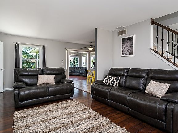 Spectacular 2 story home with gorgeous new tile which runs through the hallway, kitchen and half bath. Updated eat in chefs delight kitchen with sleek dark cabinets w/nickel hardware, beautiful tiled back splash, stainless appliances & track lighting.Gleaming dark laminate flooring runs through the formal dining area w/unique track lighting, formal living room and spacious family room w/tile surround fireplace. Lovely sunroom w/cathedral ceiling, heated ceiling fan and walls of windows overlooking the manicured backyard w/brick patio area. 1st flr laundry. 4 family sized bedrooms upstairs. Large MBR with completely updated, completely tiled master bath suite with huge walk in closet and whirlpool tub. Updated tiled hallway bath. Completely finished LL w/rec rm and 2nd kitchen. Newer mechanicals, 100 amp service. This fantastic home has bee completely updated & remodeled w/ white 6 panel doors, fresh paint, new fixtures and all new windows.