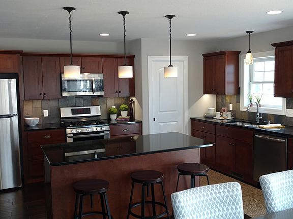 Custom built ranch style home with full basement to finish as you wish! Open floor plan, with a beautiful gas fireplace, hardwood floors, cherry cabinetry with granite counters, stainless appliances, large walk-in pantry off the kitchen. 3 bedroom, 2 baths includes master suite with walk-in closet. Two stall attached garage - fully insulated & finished. Great location close to lakes, parks, trails & schools.