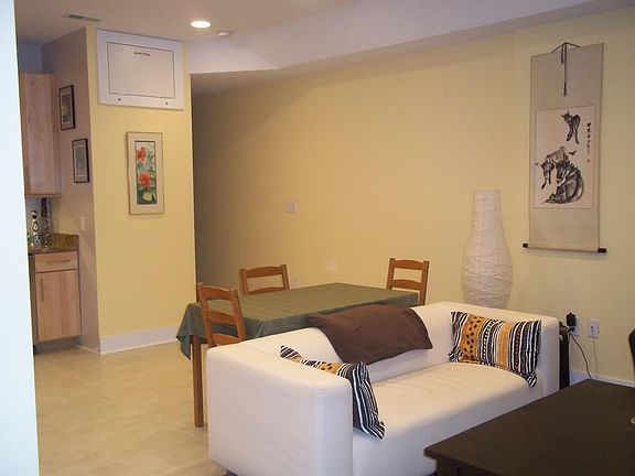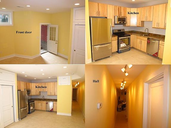 Open floor plan between the living area and the kitchen. 2 bedroom - 1 bath lower level apartment. 1000 square feet of newly renovated space. 9.5 foot ceiling height Wonderful bright living space with brand new appliances: Full size refrigerator, ultra quiet dishwasher, full size washer and dryer. Bedroom 1 is 10 x 11 ft with large closet and extra storage above. Bedroom 2 is 10 x 9 ft with large closet and extra storage above. Large window in each bedroom. Living area has large closet and extra storage above. Kitchen has granite countertops, garbage disposal, under cabinet lights and full size appliances. Bathroom has a stand up glass-walled shower with granite vanity. Bath has vent and separate heater. All lights are on dimmers. Cable and phone ready. Separate central heat and a/c controlled by you. 3 blocks to Columbia Heights metro and Starbucks, Target, FedEx Potbelly, and more. Around the corner from Wonderland, Makan, Red Rocks, Bad Saint, The Coupe, El Chucho, and more. Rent is $2,200/month plus electric, approx. $35/month Available Sept 1. For move-in, first month's rent and security deposit. Monthly rent and electric