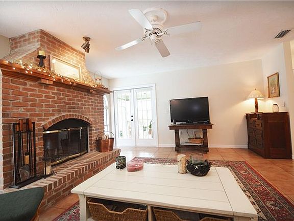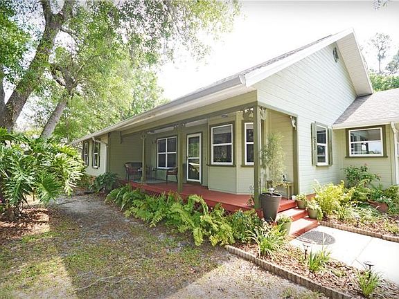 Welcoming pool home on large lot! This custom 2 bedroom 2 bath beauty gracefully rests on a meticulously maintained lot with over 1 acres of private landscaped paradise. This home offers peace of mind as it has been pre-inspected by Inspectors Inc. & necessary repairs have already been completed, including a brand-new roof, making this home truly move-in ready! As you approach this home you are entranced by the charm of its craftsman style design & inviting front porch. The Inside of this cozy home is full of custom upgrades & finishes that are sure to please. Upon entering you are greeted by a spacious office to the left(that can be easily used as a third bedroom) and on your right lies the formal dining room offering rustic chandelier lighting, a bay window with a seat offering storage & hardwood flooring. You will find yourself gravitating towards the enticing living room centered around the wood burning fireplace with original brick construction. Inspire your inner chef in the kitchen boasting ample lighting, closet pantry, built-in desk, plenty of counterspace & pine hardwood flooring. Retreat into the private master suite offering his & herâs walk-in closets & a private master bathroom built for two. Escape to the large screened lanai offering multiple covered sitting areas & a refreshing crystal-clear swimming pool perfect for cooling off on hot summer days. This charming home is situated on over 1 acre of land made private by the mature landscaping of countless grandfather oaks & whispering pines.