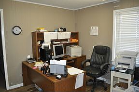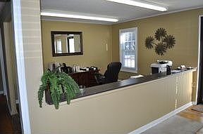 Large lot that fronts on N.Main and Jackson Ave. Nice building with reception area and three large office spaces, kitchen area. Central heat/air. Newer metal roof and replacement windows.