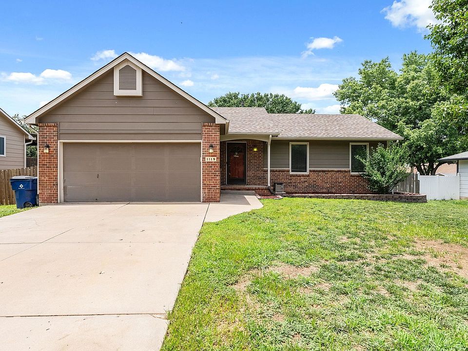 *We are in receipt of multiple offers, and ask that best and final offers would be submitted by Sunday June 25th at 5:00pm.* Welcome to your dream home conveniently located in Derby, KS! This spacious residence offers a perfect blend of comfort, convenience, and style. Move in knowing that this home has been well-maintained, with a newer water heater and roof. With the combination of a charming wood-burning fireplace, vaulted ceilings, and the beauty of natural light streaming through large windows and an open kitchen, this home truly offers a serene and welcoming environment that you'll be excited to call your own. You will love the large primary bedroom that boasts an en suite bathroom, providing privacy, extra countertop space and dual sinks. The two additional bedrooms on the main level offer plenty of space and natural light. The home also features a generous basement with projector included, offering endless possibilities for recreation and entertainment. In addition to the main living areas, you'll find a fourth bedroom in the basement, providing flexibility for accommodating guests or adding an office space. Storage will never be an issue, as this home offers ample room for all your belongings. The basement provides additional storage options, and there's even an outdoor shed for your convenience. The neutral finishes throughout the home provide a blank canvas, ready for its next owner to add their personal touch and make it their own. Whether you prefer a modern, contemporary, or traditional style, this home will seamlessly accommodate your design preferences. Step outside and you will find a large patio area, surrounded by mature trees, perfect for summer kickbacks or even adding a hot tub! Don't miss out on this incredible opportunity to own a home with such convenience, a great location, and endless possibilities. Schedule a viewing today and envision yourself living in this Derby gem!
