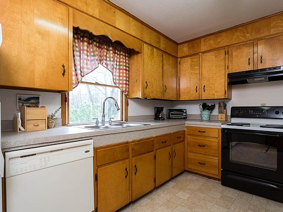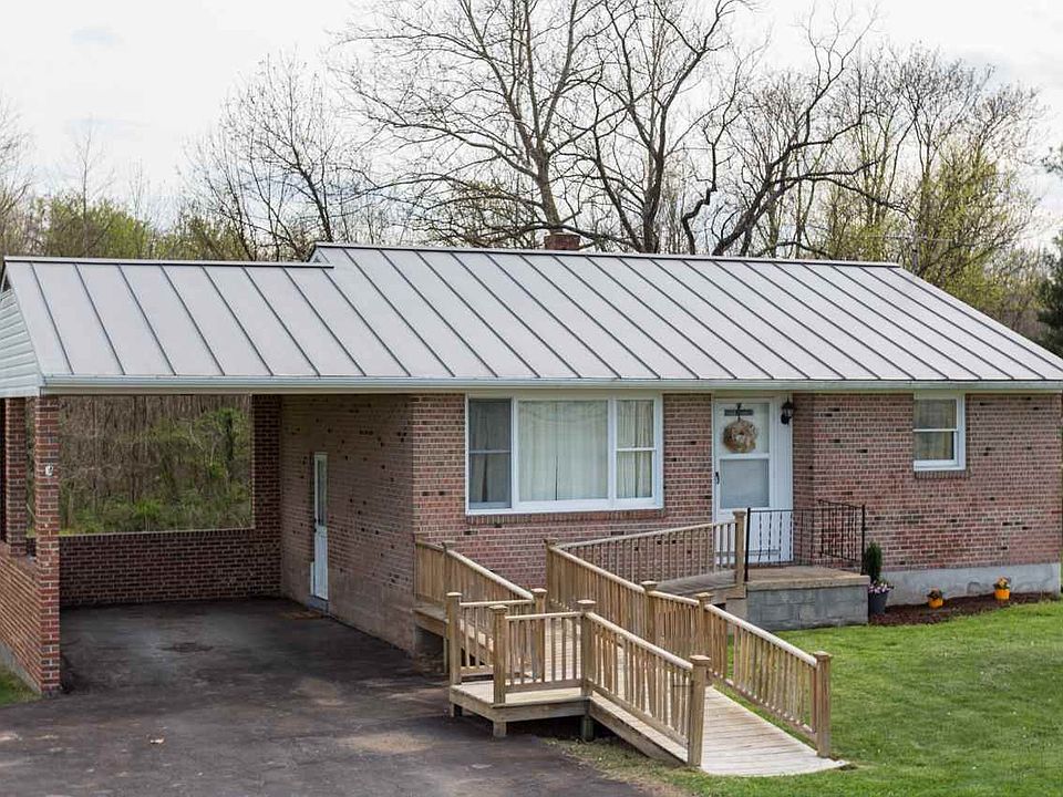 This solidly built brick ranch in a quiet country setting is calling your name! The home features 2BR and 1BA on 959 livable sq ft, sitting on 0.75 acres. Open the front door to the spacious living room with hardwood floors and a large picture window that lets in beautiful natural light. The well-equipped kitchen features an ample pantry closet and plenty of counter space. Laundry is conveniently located on main level. A few steps down from the kitchen is the full, walkout, unfinished basement where you will be impressed by its condition and size, boasting the potential to almost double your square footage! Take a stroll outside and enjoy the mountain views or relax on the stone patio with the built-in firepit, perfect for entertaining.