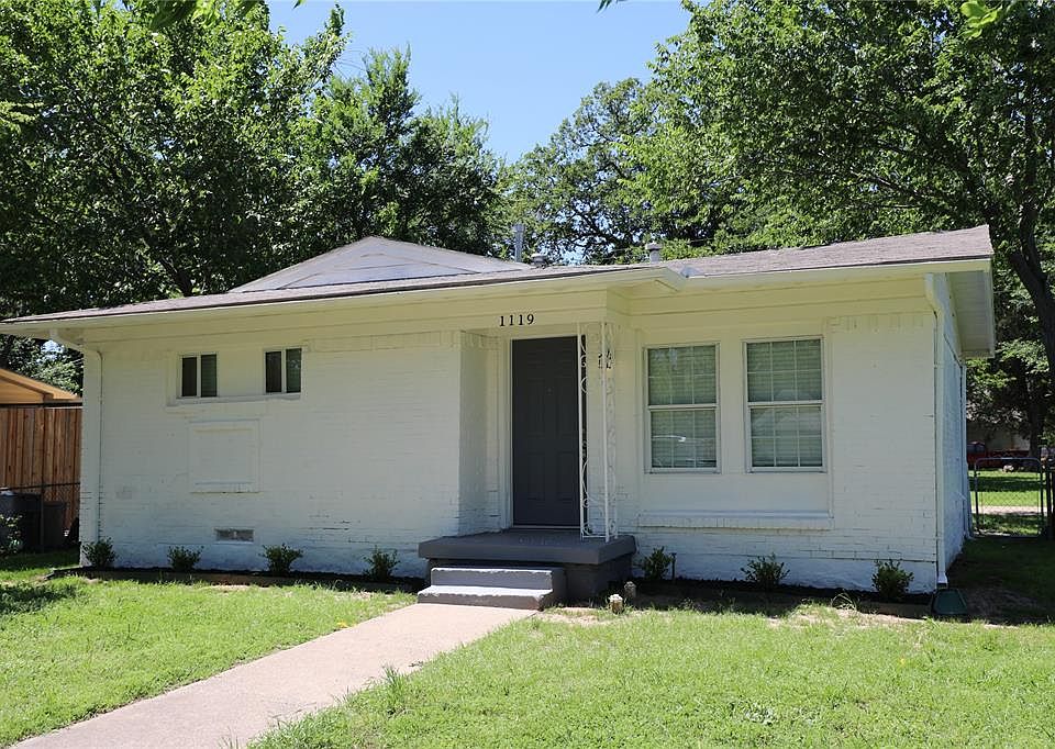 This cozy Mid-Century home was recently updated with fresh interior and exterior 2-toned paint and new fixtures. The floor plan boasts a generous living area adjacent to the kitchen with attached laundry space, a large master bedroom, another bedroom perfect for sleep, study, and storage, and a full bath off of the hallway. Stepping out from the kitchen, the large wrap-around yard is perfect for any outdoor activity. The home is in a central location near Mesquite Championship Rodeo, Seabourn Elementary School and West Mesquite High School, along with tons of shopping and dining at Griff's Hamburgers, IHOP, Whataburger and more! Buyer to verify all info.