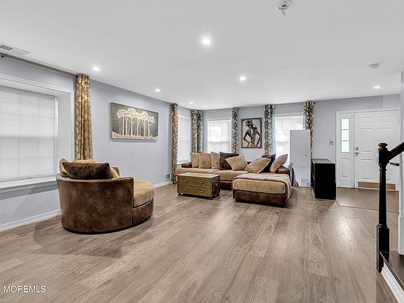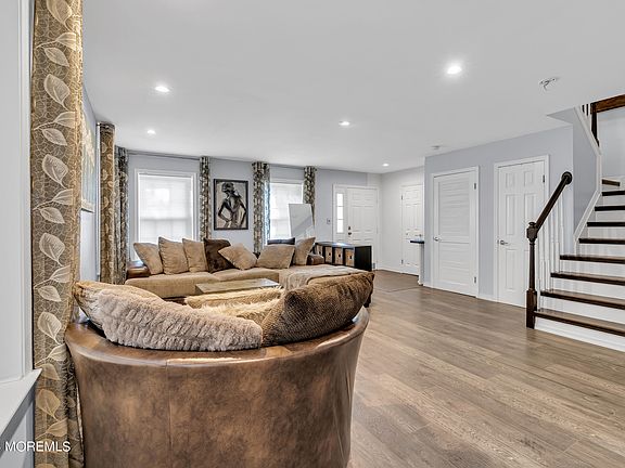 Welcome to this stunning 3-bedroom, 2.5-bathroom end-unit townhouse located in the desirable Point de Jardin community in Morganville. This beautifully maintained home boasts an open concept floor plan, perfect for modern living. The spacious living room flows seamlessly into a modern eat-in kitchen, equipped with newer appliances and plenty of counter space. The formal dining room is ideal for entertaining, and recessed lighting throughout the first floor adds a touch of elegance.