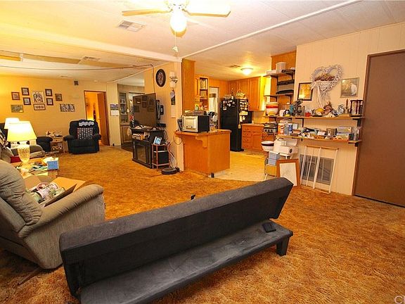 Priced to Sell!!!! Wonderful opportunity to own this 4-bed 2-bath Manufactured Home in the city of Ridgecrest on it's own land. Bring your toys, horses and farm animals, plenty of room for everyone. Property needs some TLC. Interior features, large open living room, connecting to dinning room and kitchen. 2 bedrooms are on one side of house and an extra office can be a 4th bedroom. Master bedroom and master bath with combo shower/tub and walking closet. Laundry room leads to backyard. Large garage and detached workshop. 3/4 Acre lot, fenced front yard with landscaped grass, pomegranate tree in back yard currently fully bloom, free standing above ground pool deck, half basketball court with hoop. 2 evaporative coolers and roof replaced 5 years ago, newer gas furnace installed in 2019. Buyer to verify all information and perform their own inspections.