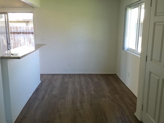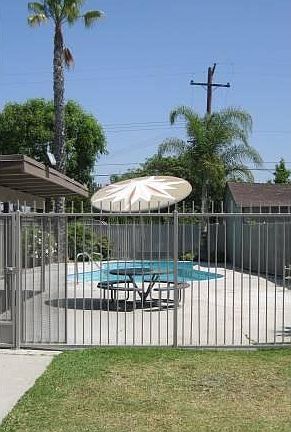 Single story end unit, only one attached wall! 2bdrm 1 bath w. washer/dryer hookups inside, private yard/patio area, detached garage with opener, and one assigned parking spot. Unit also features white vinyl windows, kitchen w. quartz countertops, and cultured marble shower. Pool in complex as well. Rent includes water, trash, sewer, pool, and gardener. Indoor cats ok, small to medium dogs please submit. Sorry, no Large dogs. Pets require deposit. Owner pays sewer, water, trash, pool, and gardener. Application fee is $38 per adult. Some pets ok with deposit, please submit.