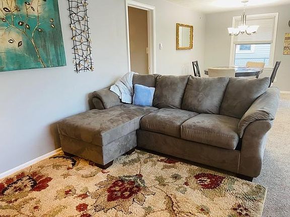 This home was bought and furnished with traveling professionals in mind. A three bedroom ranch style home with one bathroom. Full laundry space included right off the kitchen. All utilities are included in the rent; electric, water, trash and high speed internet. Brand new carpet, a dedicated office area, new beds, bedding and couch complement the full kitchen, dining and living rooms. Kitchen has eat in area, a pantry, microwave and glass top stove. The fenced in yard has plenty of room for your fur baby to roam, all nestled on a quiet street. Minutes from River Greenway trails, Johnny Appleseed Park, Memorial Coliseum, Glenbrook Mall; endless shopping, dining and entertainment options. A garage is also available for your use to get your car in out of the elements. This home is completely furnished and move in ready. It is ideal for the traveling professional, someone in need of short/mid-term housing that is affordable and close to everything! All utilities and internet is included in the rent. There is off street and garage parking available. Tenant is responsible for lawn care, a lawn mower is provided. Minimum lease term is one month, maximum is twelve months.