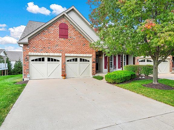 Elevated curb appeal & doll house charm welcome us to this gorgeous villa nestled away in a private setting of the sought-after Crimson Oaks community. This is a very rare opportunity for one of these villas to come available for under $400K. A low monthly fee pays for lawn maintenance, irrigation, some exterior maintenance, & snow removal. The foyer ushers us into 2 spacious bedrooms, 2 full baths, soaring 9 foot ceilings, wood burning fireplace with marble surround, 6 ft tall windows in the Great Room, custom shutters throughout, hardwood entry, 42'' maple cabinets with crown molding, waterline for refrigerator, extra deep kitchen sink, main floor laundry room, walk in closets, 2 car garage, primary suite with adult height double bowl vanities & separate tub & shower, custom paint throughout, double door entry to the second bedroom, & guest bath. The lower level has a bath rough in & sump pump. Minutes from Hwys 64/61 & 70, shopping, & entertainment! Fridge, washer/dryer all stay. Location: End Unit, Ground Level