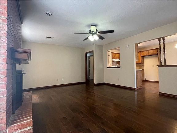 Selling as is! 3 bedroom 2 bathroom half duplex in North Edmond! Solid surface floors in living areas and carpet in bedrooms, fireplace in living room, central heat/air, interior laundry connections, fenced backyard, and a 2 car detached garage!