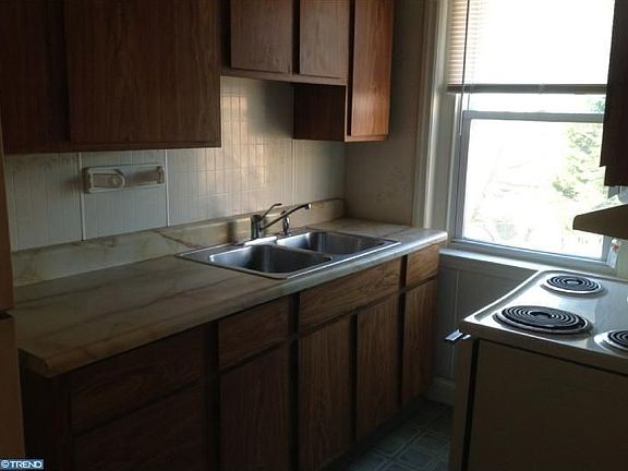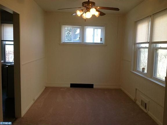Pretty Stone front end of row home located one block from Library. This home features, fresh paint and new carpets throughout. Replacement window, Living Room, Dining Room and Kitchen with electric cooking, stainless steel sink and exit to fenced rear yard with deck, shed and 2-car parking behind fence. 2nd floor features two nice size bedrooms with ceiling fans and Full Bath. This home is great for 1st time buyers or investors! Move your tenants right in! All the work has been done.