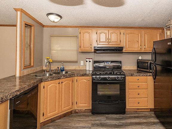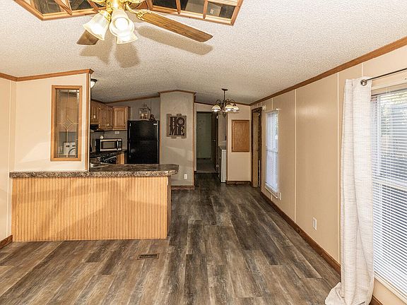 This affordable 3 bed / 2 bath home is move in ready with new paint and flooring throughout. There is an open concept floor plan and the kitchen has a gas range. The laundry is located right of the primary bedroom with a private suite. The home is located on a lot with mature trees. There is a large deck, an attached mud room and a storage shed.