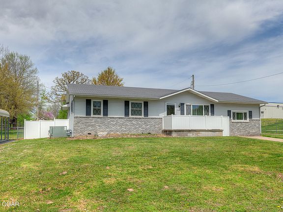 Very nice ranch style home in the city limits of Carthage. This home features 3 bedrooms, 2 full bathrooms, new carpet in bedrooms, new laminate flooring in kitchen, 2 separate living spaces, a very nice and large back yard with vinyl privacy fencing, deck and a huge 3 car detached garage/shop, a very nice storage building as well and sets on over half an acre right in town.