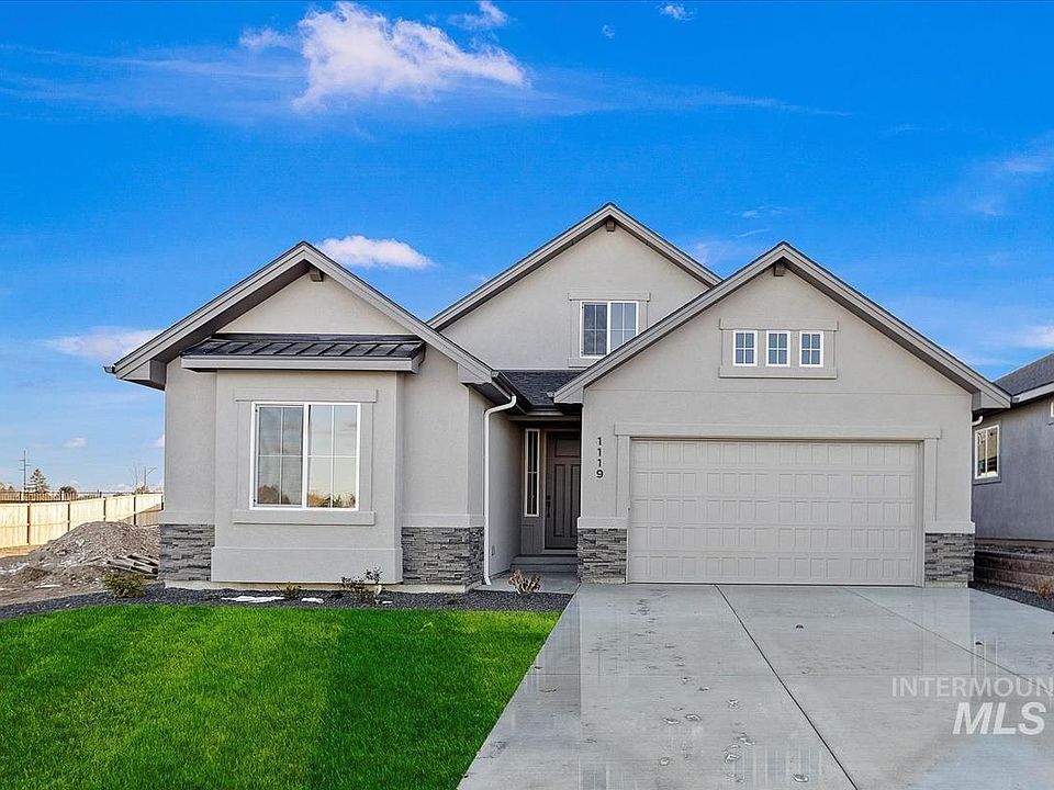 The Riverton Bonus by Tresidio Homes. This home is both stylish and practical with single level living plus an upstairs bonus. Windows fill the open kitchen and living area with light, creating a welcoming space to enjoy with your family and friends. Engineered hardwood floors in the main area, a mix of stained and white cabinetry, large kitchen island, stunning ceiling tray and beautiful quartz counters add to the beauty of this home. The owner’s suite features a tile walk-in shower, dual vanities and spacious walk-in closet with convenient wrap around to laundry room. 500 square feet are added to this home with an upstairs bonus room and bathroom. Fully landscaped with partial fencing and all the amenities of Summit Ridge. MOVE IN READY!