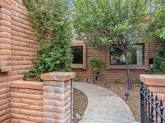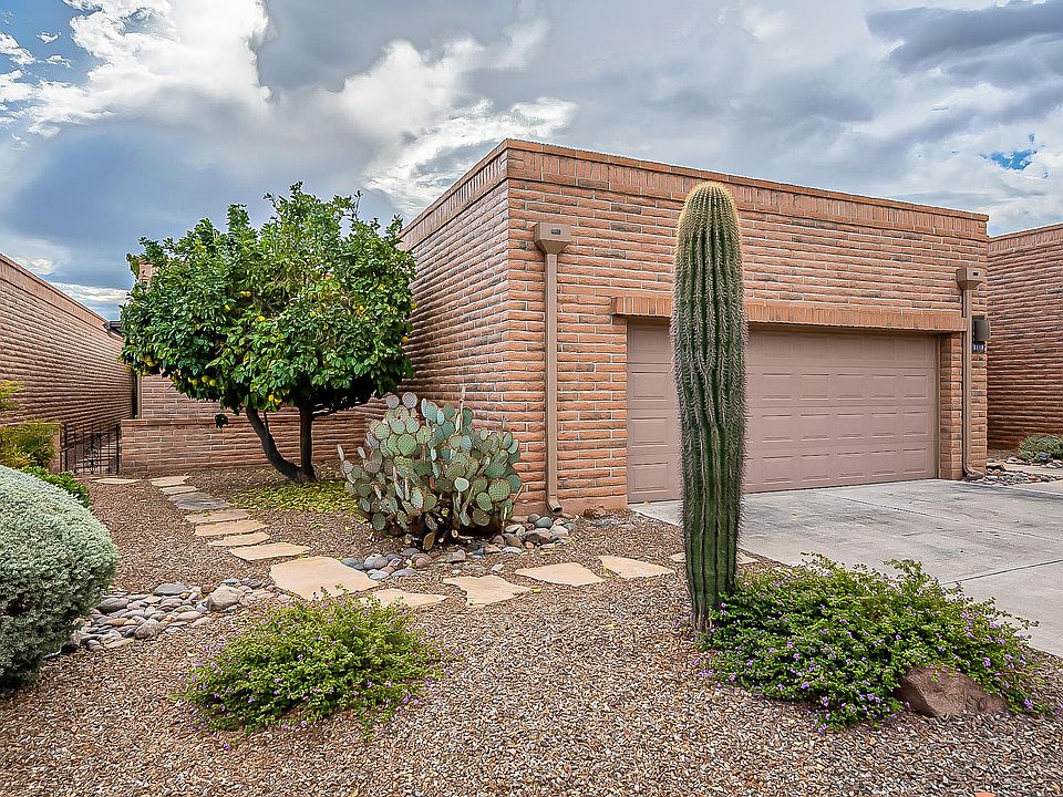 Breathtaking mountain views! Natural desert plantings, a large saguaro, and red brick exterior create an alluring curb appeal. Follow the curved entryway through an iron gate to find a charming front courtyard with mature vegetation and plenty of privacy. Inside you will step into a large great room with a gas burning beehive fireplace and gorgeous views of the Santa Ritas! The off-kitchen bonus room provides plenty of extra space for entertaining with access to your full-length enclosed Arizona room. Your master suite includes a large walk in closet, walk in shower, and patio access. Down the hall, you will find a guest room and den over looking the front courtyard. You will appreciate the many extra storage spaces, built in garage cabinets, large laundry room, and brand new HVAC system. The photos do not do the mountain views justice! Come take a look for yourself... Welcome Home!