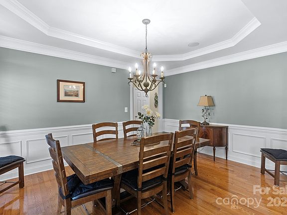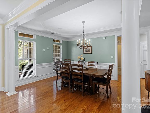 Welcome to this amazing move-in ready Ranch home in Matthews with 3 bedrooms + Flex Room! Walkable to downtown, walking trails, parks, schools, shops and restaurants! Beautifully maintained with hardwood flooring, split bedroom floorplan w/ large Primary suite, tray ceilings, primary bath with dual sinks, jacuzzi tub and separate shower. Primary walk-in custom closet and ceiling fans throughout. Kitchen features Wolf 5-burner gas range and granite countertops, breakfast bar and eating area. Formal Dining Room with tray ceiling and amazing custom finishes. Whole house vacuum system, oversized garage, 50 yr warranty roof installed in 2021 with Gutter Helmet gutters, covered Front Porch, large Trex deck with gas line for grill, 3 season Sunroom off of kitchen/Great Room, paver patio, professionally landscaped yard with in-ground irrigation system! Private backyard with no back neighbors and large trees! Plenty of storage areas in home and in large crawl space. All appliances stay!