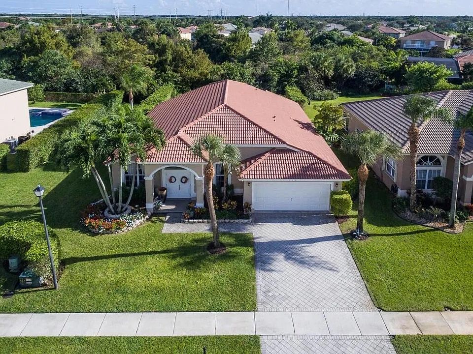 AMAZING! 4 bed, 3 bath POOL HOME on premium preserve lot in highly desirable Grand Isles w/ A-RATED SCHOOLS, NEW A/C & UPGRADES THROUGHOUT! The spacious TRIPLE SPLIT floorplan boasts vaulted ceilings w/ tons of natural light, REDONE flooring in bedrooms & UPGRADED lighting throughout. The entryway living & formal dining areas lead to the kitchen featuring granite counters, NEWER stainless steel smart appliances, oversized pantry, barstool seating, & breakfast area. The kitchen opens to a large family room w/ sliders leading out to your private backyard paradise. The covered patio is perfect for BBQs & outdoor entertaining. Relx by the pool as you enjoy the privacy of the hedged yard w/ pristine preserve views beyond. The private master retreat boasts patio sliders, 2 walk-ins & UPGRADED en-suite bath w/ custom built-in cabinetry including built-in linen closet, dual sink QUARTZ vanity, jetted tub & frameless shower. 2 addt' bedrooms enjoy a REMODELED full bath w/ granite vanity & frameless shower/tub combo & a 4th bedroom is adjacent to a CABANA BATH w/ granite vanity & frameless shower. Addt'l upgrades include smart thermostat, Ring alarm system, life saver pool fence, RE-DONE laundry room & WiFi-controlled sprinklers/garage opener. Grand Isles is a beautiful gated community w/ LOW HOA, A-RATED SCHOOLS & amenities including a newly renovated clubhouse, community pool, playground, exercise room & lighted tennis & basketball courts. Located minutes from the world-renowned Wellington Equestrian Center!