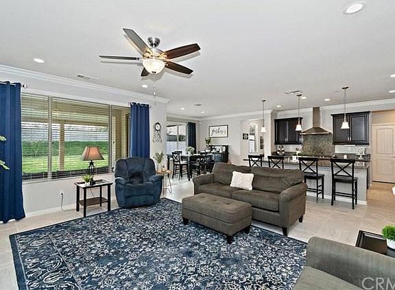 Welcome home to this beautiful turn-key 5 bedroom, 4 bath home in Serrano Ranch. This shows like a model home. As you open the front door you are greeted by an open floor plan with high ceilings. Moving forward you come to a large living room perfect for family gatherings. Gorgeous open kitchen has an island with a breakfast counter, granite counter tops, lots of cabinet space and walk-in pantry. Separate dining room with a large picture window looking out to the backyard. Separate tech/office area off of kitchen. Crown molding throughout adds an elegant decorative flair. There is recessed lighting, high ceilings and blinds throughout this beautiful home. There is a separate bedroom and bathroom downstairs. Moving upstairs you come to a large master bedroom with its own bathroom with a walk-in shower and walk-in closet. Spacious secondary bedrooms with one of the bedrooms having it's own separate en suite bathroom. All bedrooms have their own walk-in closets. You also have a large loft/bonus room upstairs big enough for a pool table and perfect for entertaining. Upstairs laundry room with lots cabinets and counter space. The focal point of this home is the huge backyard big enough for your dream swimming pool. Covered patio to sit with your morning coffee and jacuzzi to relax in at the end of the day. Neighborhood park and playground for the kids. (No HOA) Walking trails surround the community. Close to shopping, restaurants and freeway access. This one has it all!