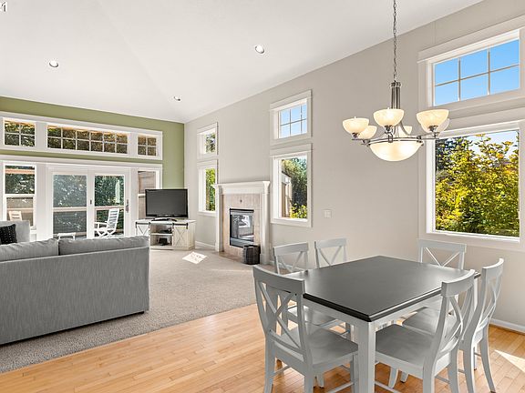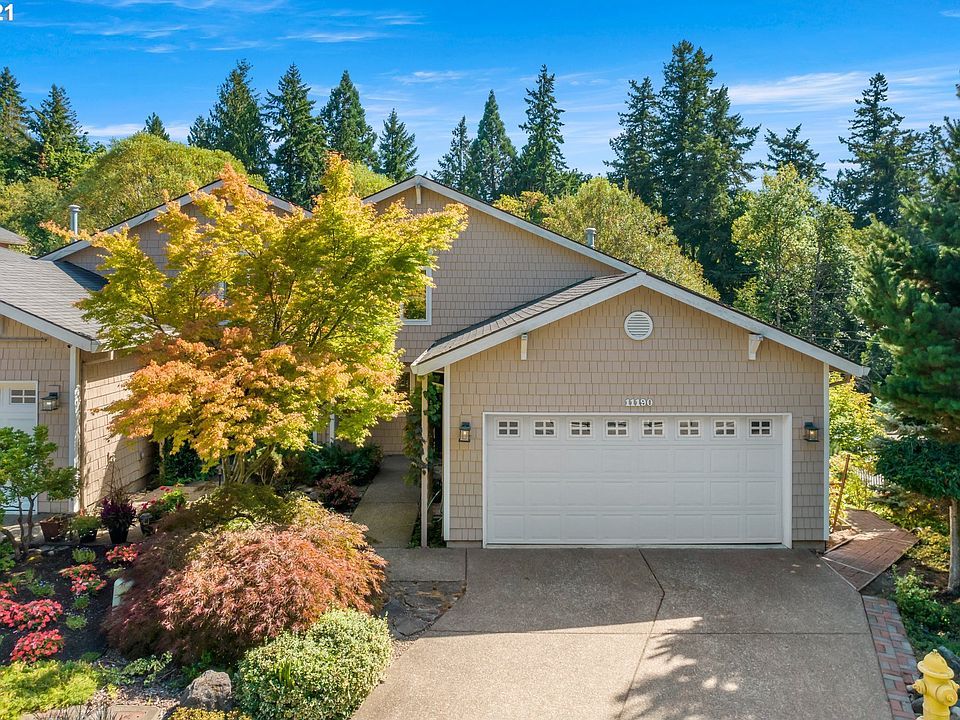 Cedar Mill end-unit townhome in quiet, private, well maintained community. Great room floorplan w quality finishes, vaulted ceilings, & wall-to-wall windows. Private deck off LR overlooks greenspace. Kitchen w eating bar, gas range, ss appliances. Spacious master w vaulted ceiling, walk in closet, dual sinks & soaking tub. 2nd bedroom w ensuite bath. 3rd bedroom/den on main level. Central A/C. 2-car garage. 900 SF finished storage space with exterior ent. Close to shops, trails, parks & transit.