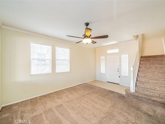 Welcome to this two-story home ln the highly desired Fairway Canyon Community. This open floor plan has 5 bedrooms and 3.5 baths. The main level has a living room/family room combo with an open pony wall and a separate dining room with crown molding and wainscoting. The family room with a fireplace and media niche is open to the kitchen with recessed lights, laminate flooring, abundant cabinets, and an access door to the backyard covered patio. Convenient first floor laundry room, half bath for guests, and direct access to 2-car garage. All 5 bedrooms and 3 bathrooms are on the second floor, including a small loft with laminate flooring and ceiling fan, perfect for a home office. There are 2 ensuite baths. The primary bedroom faces the backyard and has a vaulted ceiling with an outdoor balcony and ensuite bath with dual sinks, a separate tub and walk-in shower, and a large walk-in closet. Two bedrooms share a bathroom with a tub/shower combo, and last bedroom has an en-suite bath with a tub/shower combo. The community amenities offer 2 large pools, a spa, a clubhouse, and a gym. Conveniently located near schools, parks, highway access, shopping, and dining. Cosmetic fixer being listed below market for fast sale. The home is being sold in "as is" condition.